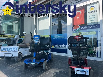 4 tekerlekli, akülü, ışık tertibatına sahip elektirikli tekerlekli sandelye kiralama hakkında detaylı bilgi, telefon, iletişim, fiyatları ve kira koşulları için Intersky Turizm Seyahat Acentası ile iletişime geçebilirsiniz.